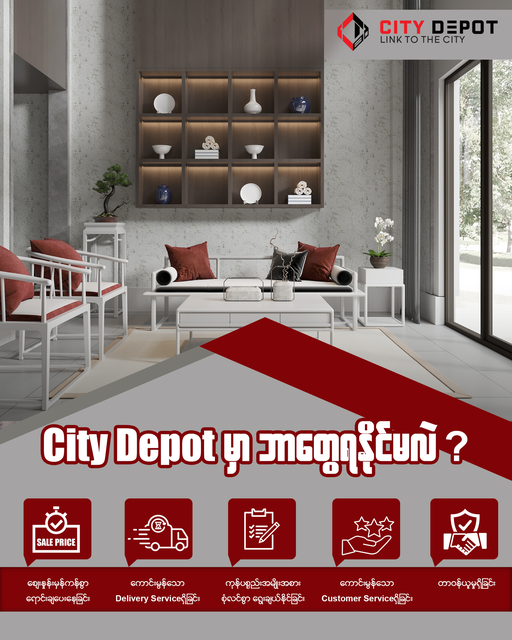 🔸 ဈေးနှုန်းမှန်ကန်စွာ ရောင်းချပေးနေခြင်း။ နိုင်ငံတကာအဆင့်မီ အရည်အသွေးရှိတဲ့ Interior Building Material တွေကို နေရာတစ်နေရာထဲမှာ စျေးနှုန်းမှန်ကန်စွာနဲ့ ရရှိနိုင်ပါတယ်။ 🔸 ကောင်းမွန်သော Delivery Service ရှိခြင်း။ City Depot မှာ […]